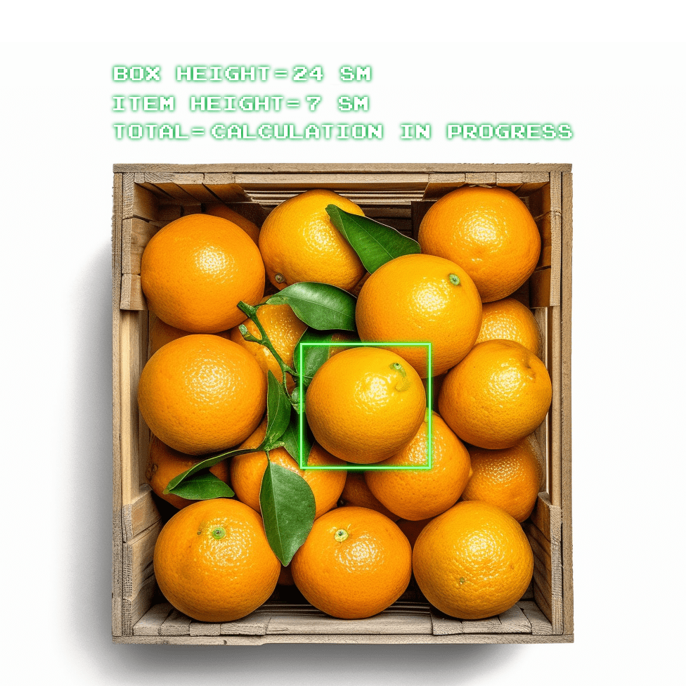 - Для определения общего количества продуктов мы применяем формулу: общее количество = количество товара на изображении * (высота коробки / высота товара)