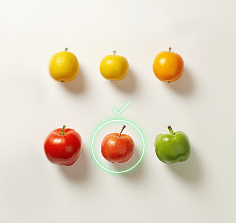 Используя передовые алгоритмы компьютерного зрения, GreenID идентифицирует товары, в том числе сложно различимые для человеческого глаза (например,
